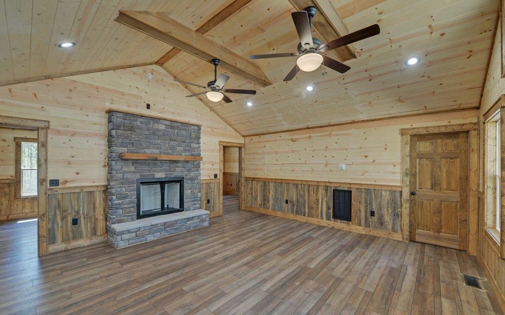 This new construction 2-bed, 2-bath cabin provides warm mountain character and low-maintenance peace of mind. Inside, vaulted ceilings open up the great room and kitchen, where a large island, fireplace, and rich wood floors, walls, and ceilings create the kind of cozy gathering space people actually remember. Thoughtful upgrades throughout set this home apart from the average new construction. Outside, the covered wraparound deck and firepit extend the living space and invite slow mornings and late-night conversations under the stars. Shared well, septic, and ample parking complete the package. Set on 1 acre and positioned near-equidistant between downtown Murphy and McCaysville, GA, it makes weekend escapes, dining, shopping, and outdoor adventure easy.