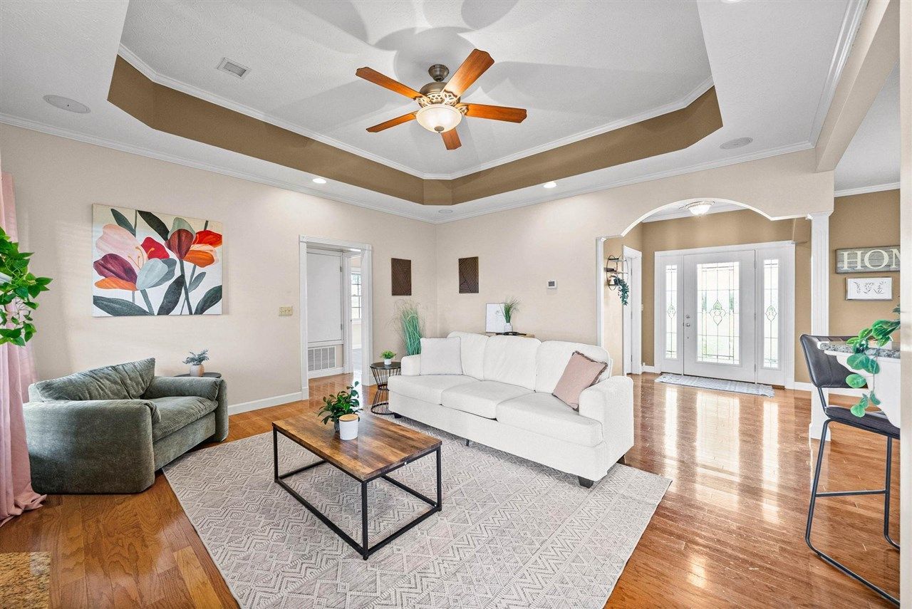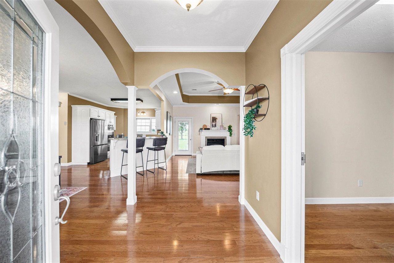 This Beautiful all Brick Home sits on 9.27 spacious acres in the county, offering the perfect blend of privacy and convenience- just approximately 5 miles from downtown Glasgow. Inside, youâ??ll find a spacious open-concept kitchen, dining, and living area that creates a warm and inviting space for everyday living and entertaining. The kitchen features granite countertops, built-in wall double oven, and ample counter workspace plus a pantry. Hardwood floors run throughout the home adding timeless character & durability. A finished upstairs room provides flexible space that can serve as a Recreation room, home theater or a 4th Bedroom if needed plus a large storage room upstairs as well. Enjoy relaxing mornings on the covered front porch and evenings on the covered patio. Additional features include a cozy gas fireplace, a two-car attached garage, and a storage building for extra space. With plenty of room to roam & classic curb appeal, this property is ideal for those seeking peaceful country living without sacrificing access to town amenities.